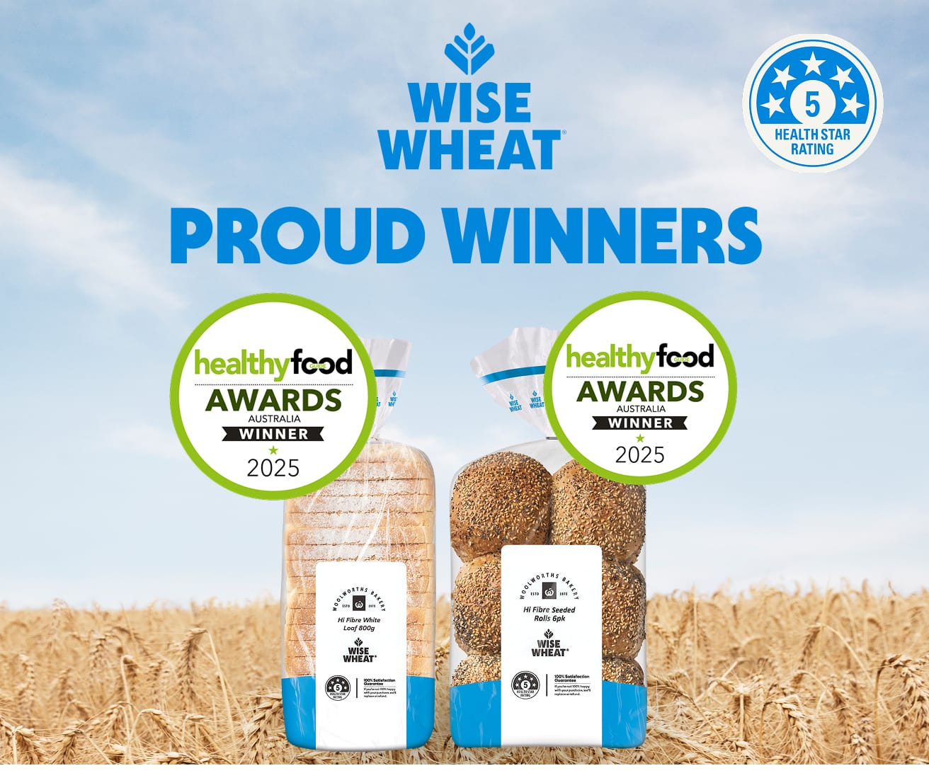 Introducing WISE WHEAT®, the naturally high in fibre flour that offers no compromise on taste or texture. You’ll find a selection of everyday bakery loaves and rolls baked with WISE WHEAT® flour at Woolworths supermarkets with an in-store bakery. Naturally high in prebiotic fibre, the range will help you easily increase your whole family’s fibre intake and contribute to good gut health as part of a healthy balanced diet.