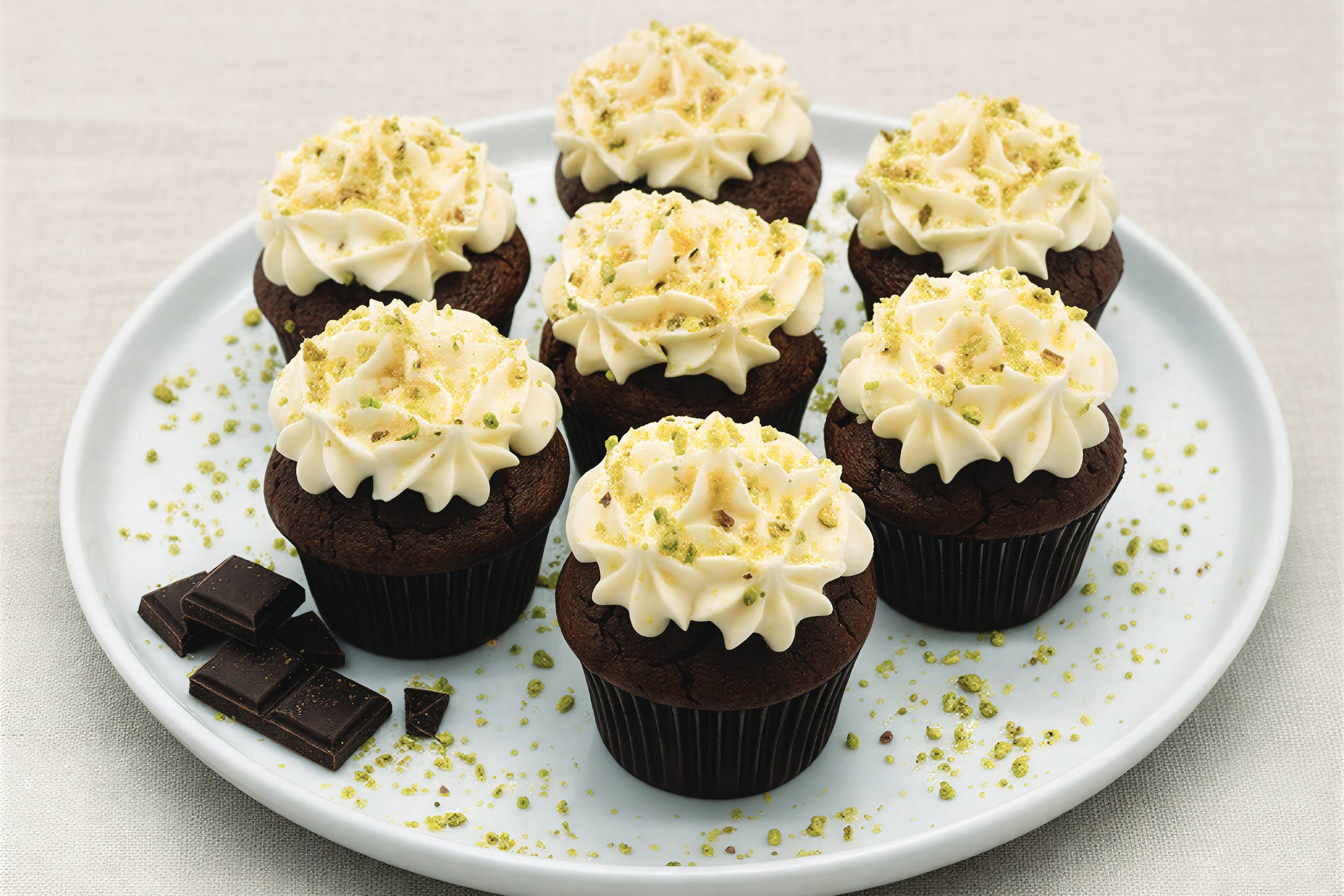 - Once cooled, decorate as desired with AP Cream Cheese Topping and chopped pistachios.