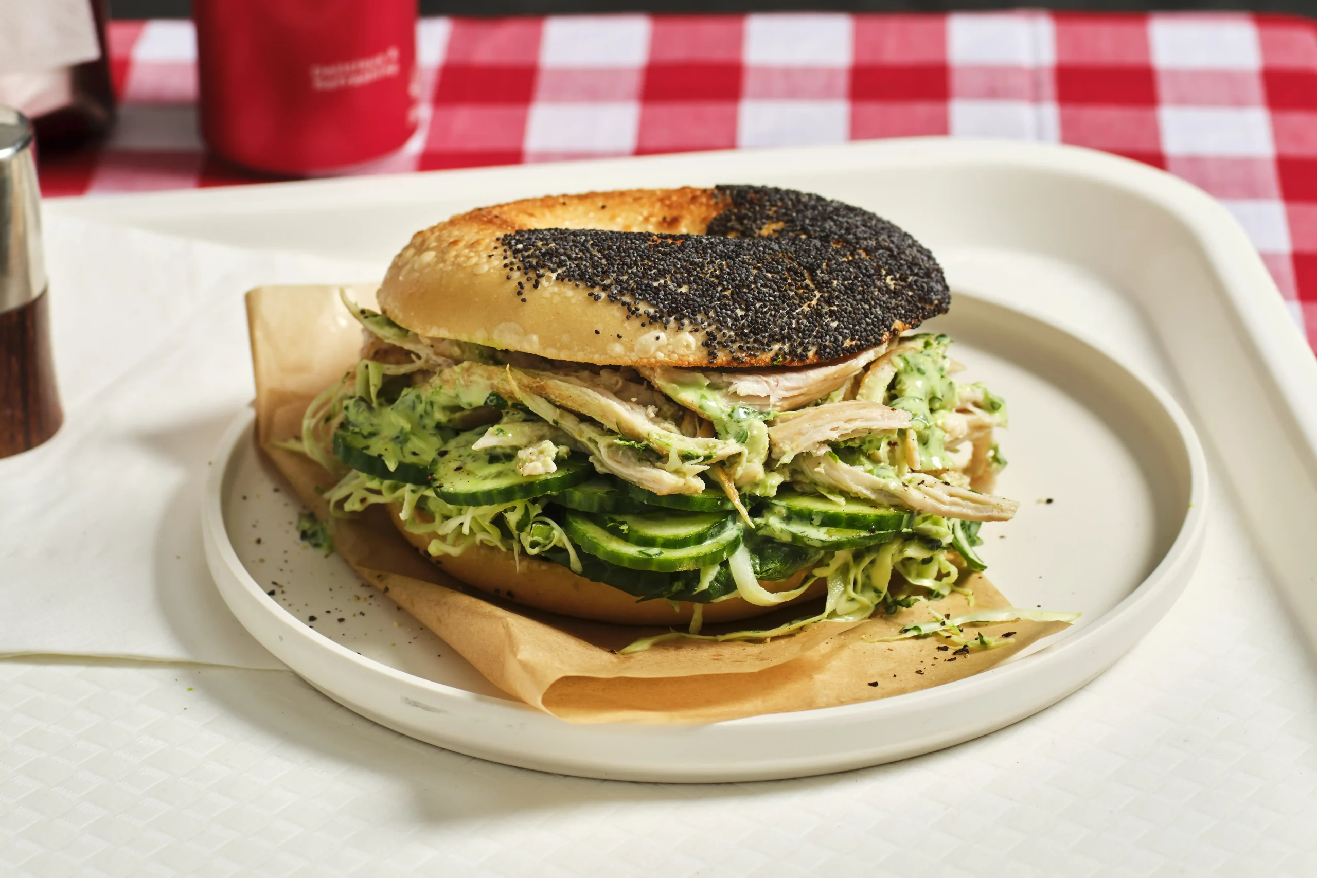 The NY Bagels Multigrain Bagel is the perfect flavoursome base for this tender and succulent pulled pork bagel with a fresh crisp apple slaw and fig jam for a hint of fruity sweetness.